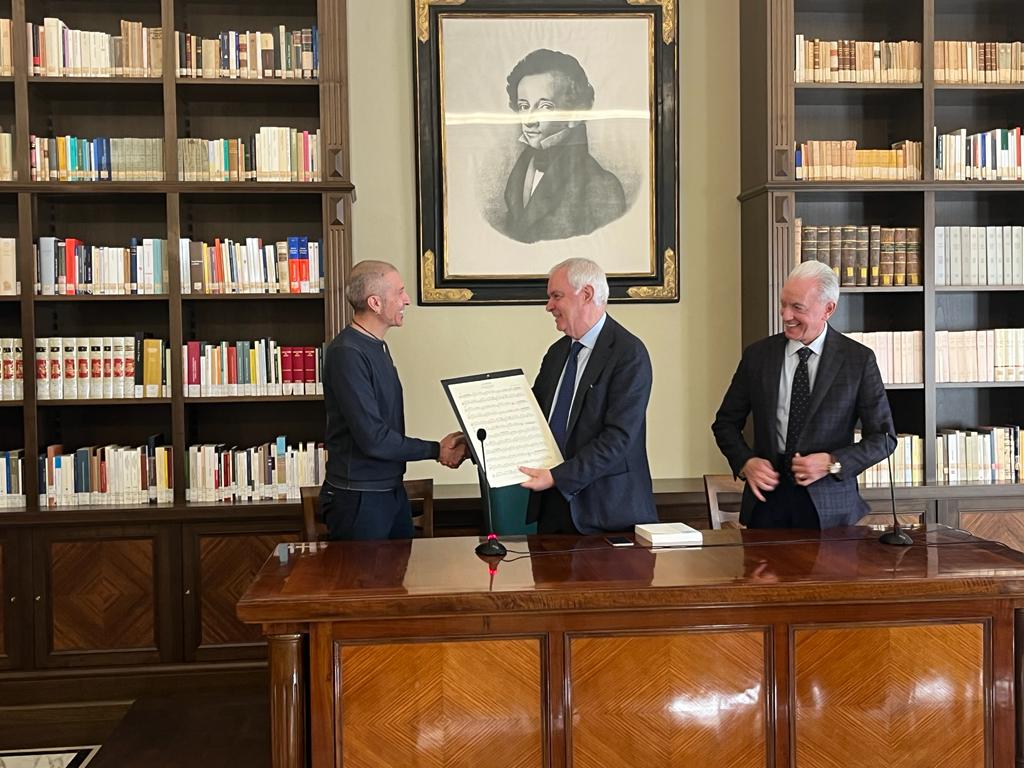 Il prossimo 24 novembre, alle ore 11:00, presso la Sala Conferenze “Franco Foschi” del Centro Nazionale di Studi Leopardiani, il compositore Massimo Varini farà dono al CSNL di uno spartito contenente la sua versione musicata de L’infinito di Giacomo Leopardi, eseguita nel 2019 al teatro Persiani dalla voce di Giuliano Sangiorgi dei Negramaro. Contestualmente, verrà donato anche il video dell’esecuzione, per il quale si ringrazia la Eko e Giuliano Sangiorgi per la generosa disponibilità dell’azienda e dell’artista.