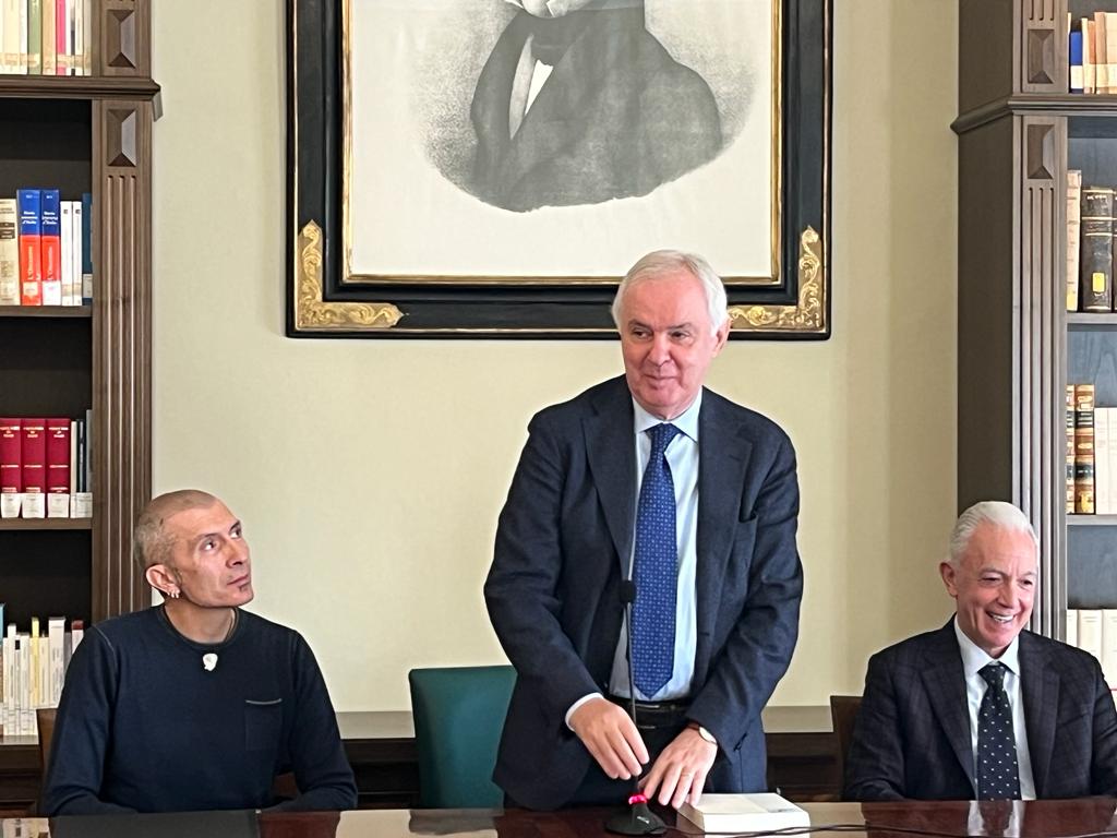 Parole, immagini, musica. La nuova iniziativa del CNSL si apre a L’infinito ricorrendo ad una delle arti di riferimento del Poeta, la musica. Grande emozione questa mattina nella sala conferenze Franco Foschi del CNSL per l’ascolto e la visione del video e dello spartito donati rispettivamente dall’Ad della Algam Eko Stelvio Lorenzetti e dal compositore Massimo Varini ed ideati appunto per celebrare l’opera di Giacomo Leopardi, dal 2019 al centro di una serie di iniziative. Saluto a cura del primo cittadino Antonio Bravi che ha ringraziato gli autori e il CNSL per l’iniziativa; il microfono è posi passato al presidente del CNSL Fabio Corvatta che ha ricordato le iniziative assunte per celebrare, dal 2019 ad oggi, il Bicentenario de L’infinito e lo spazio dedicato alla musica, oggetto anche di una apposita pubblicazione. L’Ad di Algam Eko ha sottolineato la sua appartenenza recanatese, al pari di quella azienda – appunto la Eko – che ha voluto celebrare il sessantesimo dalla fondazione con una chitarra 100% Made in Italy chiamata “L’Infinito”. Lo spartito musicale nasce dall’estro di Massimo Varini – Lorenzetti nel ringraziarlo ha ricordato il suo essere tra i migliori chitarristi della scena mondiale – che ha voluto sottolineare il suo approccio all’opera: «Le immagini girate per il video mi hanno dato un’emozione incredibile allora ho detto mi piacerebbe misurarmi umilmente nel provare a scrivere, a stendere un tappeto musicale sopra queste belle immagini, anche semplicemente suonare la chitarra sulle parole meravigliose de L’infinito ti carica di una certa responsabilità, è stato molto bello; quando poi queste emozioni vengono accettate dalle istituzioni significa che si è riusciti a trasferire quello che sentivi dentro, sono io che vi ringrazio per avermi dato questa possibilità». Se a Giuliano Sangiorgi si abbina solitamente il suo essere un cantante (fondatore dei Negramaro), per L’infinito lo si scopre meravigliosamente coinvolgente nel recitare i versi leopardiani musicati appunto da Varini. In sala, oltre al primo cittadino leopardiano, tra gli altri, c’erano la referente del FAIOrto sul Colle dell’Infinito Alessandra Lailo e la direttrice del Villaggio delle Ginestre suor Barbara Brunalli. Chiusura dei lavori ad opera del presidente del CNSL Fabio Corvatta: «Non mettiamo limiti alla Provvidenza, credo che questo incontro possa essere il primo di una collaborazione con Massimo Varini che ringraziamo per il dono e per la professionalità. Credo anche che il video de L’infinito simboleggi il lavoro svolto finora per diffondere la poetica leopardiana nel mondo, operazione che ci ha visti in azione con il sostegno di molti, del Ministero, della Regione, del Comune, del FAI e di tanti artisti che generosamente hanno donato tempo e professionalità per lo scopo che il CNSL si prefigge dal 1937, anno di fondazione».